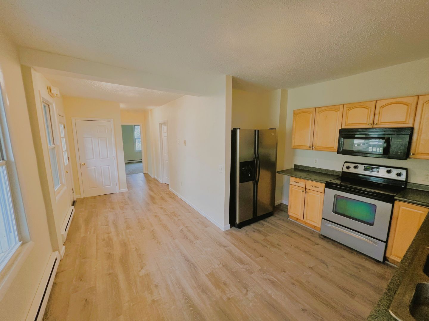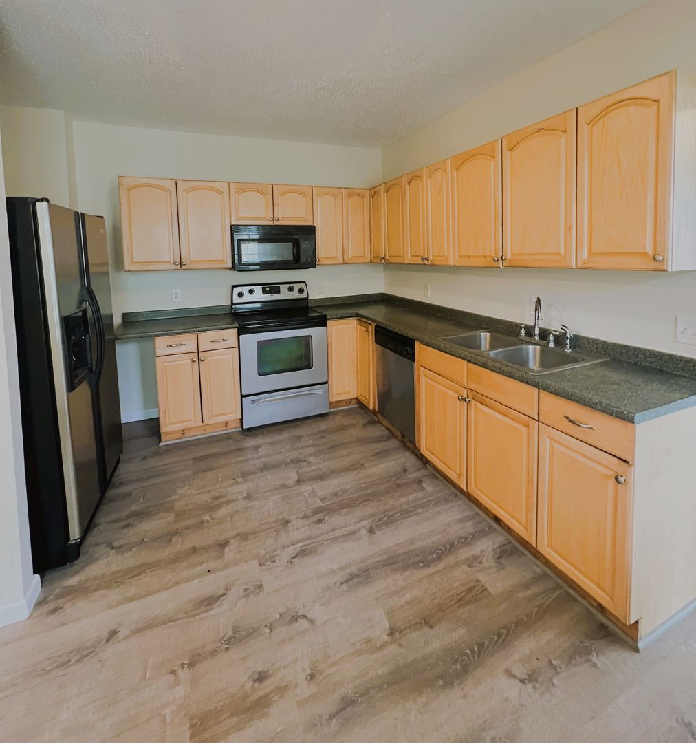 This updated and inviting 2-bedroom, 1-bathroom unit is ready for immediate move-in. Recently refreshed with new paint and flooring throughout, it also features brand-new appliances and more thoughtful upgrades. The spacious eat-in kitchen offers plenty of cabinet and counter space, perfect for anyone who loves to cook. An in-unit washer and dryer add extra convenience to your daily routine. Both bedrooms are generously sized, with the master bedroom featuring a large walk-in closet. The property is well-maintained and includes amenities such as off-street parking, snow removal, lawn care, trash service, and 24/7 on-call maintenance. Located within walking distance to everything you need and just steps from the bus route, this unit offers comfort and convenience in a prime location.